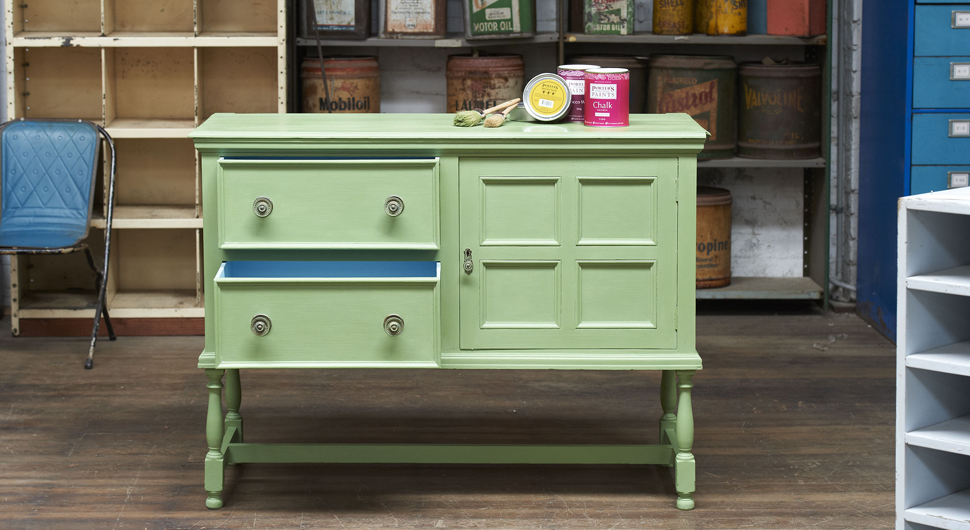 Porter’s Chalk Emulsion™ is available in 500ml, 1litre and 2 litres.