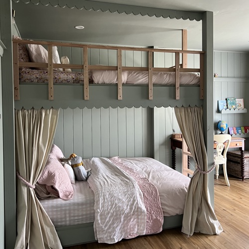 Walls, ceiling and bunk bed all painted in colour: Olive Grove